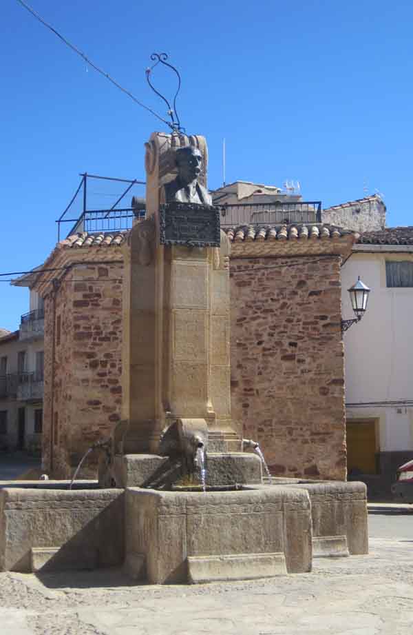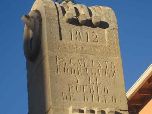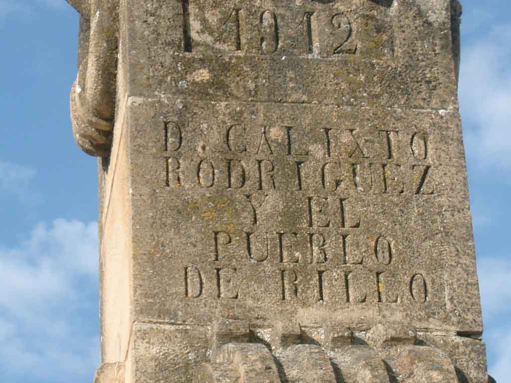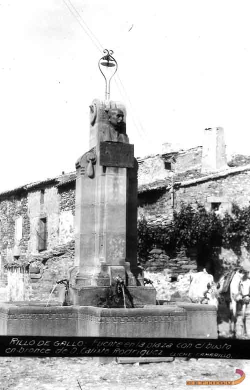 setenta. La fecha del centenario nos lo confirma la placa que dice "A D. Calixto Rodríguez. El pueblo de Rillo. 31 diciembre 1911", aunque el que labró la piedra también grabó en la parte posterior "1912 D. CALIXTO ROGRÍGUEZ Y EL PUEBLO DE RILLO". Esta fecha de "1912" también aparece, sin otro texto que la acompañe, en el depósito del Borbullón, como verás en las fotos que adjuntamos más abajo. El cantero que labró las piedras de la fuente en 1911 previsiblemente seria el mismo que hizo las fuentes de Molina en 1907, del que tenemos la siguiente referencia histórica: “Se ha encargado por su cuenta de todos los trabajos el inteligente maestro cantero Jorge Herrera”. Algunos expertos la incluyen en el movimiento artístico que se denominó modernismo. El modernismo en arquitectura y escultura es un movimiento que surgió a finales del siglo XIX y principios del siglo XX, aproximadamente entre 1880 y 1920. Este movimiento se caracteriza por un estilo decorativo, dinámico y expresivo, que buscaba romper con los estilos clásicos e históricos predominantes, abrazando la creatividad y la innovación. Muchos son los que han escrito sobre nuestra fuente, entre otros Antonio Herrera Casado y José Serrano Belinchón, en Nueva Alcarria dicen lo siguiente: Don Calixto Rodríguez fue ingeniero de montes y pionero de la explotación resinera en la comarca, quien, a cambio de votos para el Parlamento nacional en tiempo de Romanones se volcaba por aquellos pueblos en beneficio propio con obras como ésta: «A don Calixto Rodríguez, el pueblo de Rillo. 1911», dice en la cartelera de bronce bajo su busto del mismo metal. La fuente surge abundosa y clara por cuatro caños a la vez sobre sus correspondientes piloncillos de piedra bien labrada El último piropo, el que le ha dedicado Paulina en la poesía que puedes leer más adelante, después de las fotos. Un resumen de la historia de la fuente se recoge en una colaboración que publicó Nueva Alcarria el 16 de octubre 2020. Pincha aquí