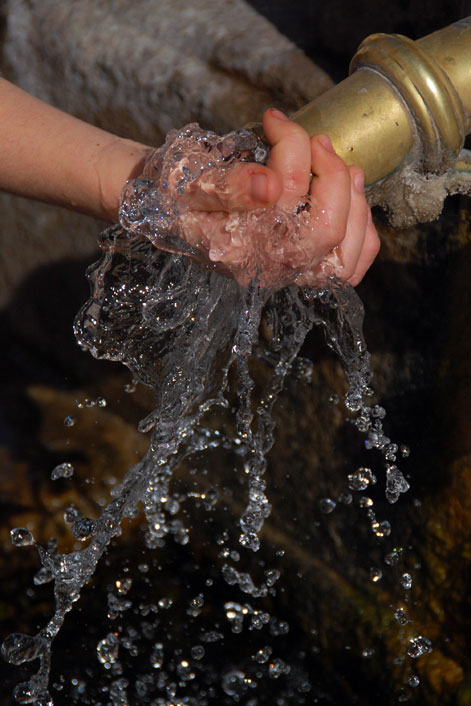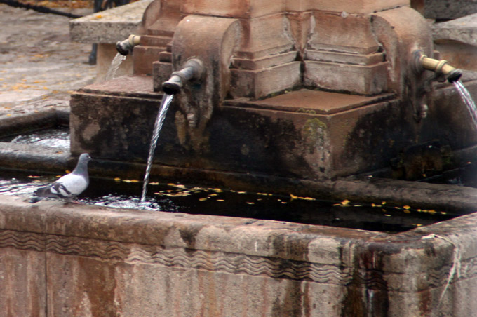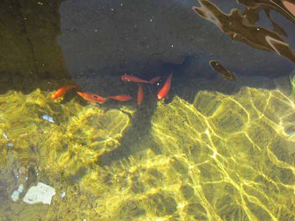 | El bronce de 100 años está como el primer día y los caños cayendo llenos en muchas ocasiones. Impagable... y si no que lo digan los numerosos visitantes que llegan todos los días para llenar sus garrafas | Y el último grito de la fuente: mantener unos peces rojos para divertimento de los peques y mayores | |||